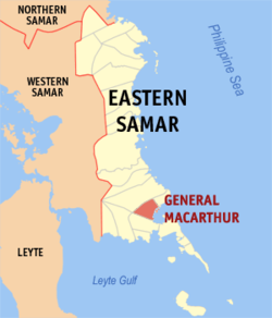 General MacArthur is a fifth class municipality in the province of Eastern Samar, Philippines. According to the 2015 census, it has a population of 14,550 people.
