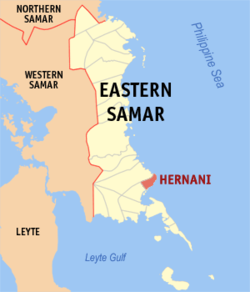 Hernani is a fifth class municipality in the province of Eastern Samar, Philippines. According to the 2015 census, it has a population of 8,573 people.