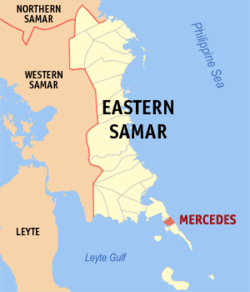 Mercedes is a fourth class municipality in the province of Eastern Samar, Philippines. According to the 2015 census, it has a population of 6,070 people.